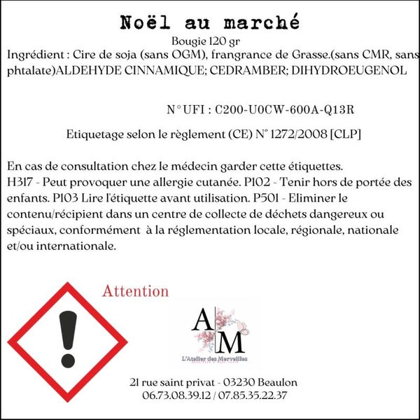 Découvrez le confort avec "Noël au marché", une fragrance qui évoque les moments chaleureux de l'hiver. La note de tête hespéridée se mélange habilement avec des touches de poivre, inaugurant une célébration épicée en son cœur, dominée par la cannelle et le girofle. En fin de parcours, des notes de musc et de bois sec vous enveloppent dans une étreinte douce et réconfortante, évoquant le vin chaud sur les marché de nöel.