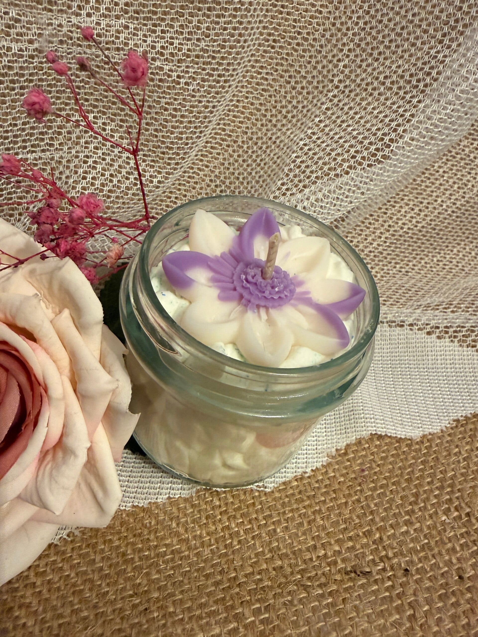 Chaque bougie est façonnée à la main avec soin, ornée de délicates fleurs qui rappellent la légèreté d’une confiserie raffinée.